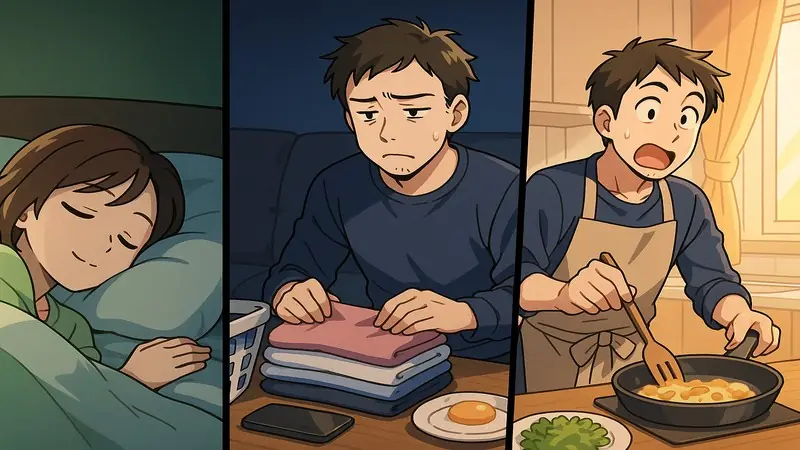 作り置きの料理を作っておく、宅配弁当を頼む、いつでも食べられるような果物(バナナ・みかん等)を常備しておく、レトルトパックのご飯などレンチンで作れるものを買っておく、などなど。