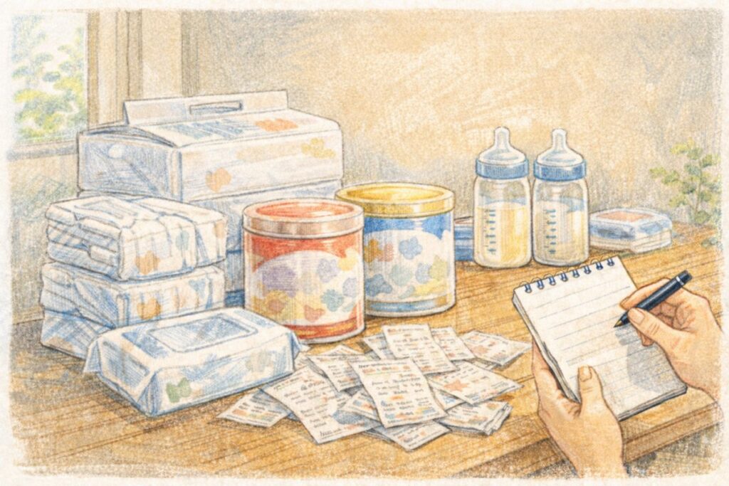 ただ、実際には赤ちゃんの飲む量やおむつ交換の回数、飲み残しの有無などで金額はかなり前後します。余裕ある家計を考えるなら、少し多めに見積もっておくくらいがちょうどいいかと思います。