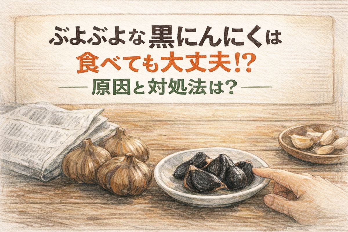「ぶよぶよな黒にんにく」自体が即アウトではありませんが、水分が多い=傷みやすい可能性は高いです。