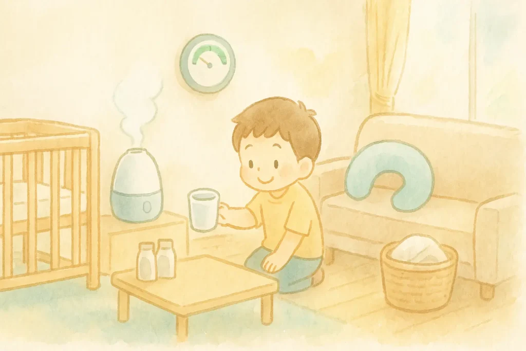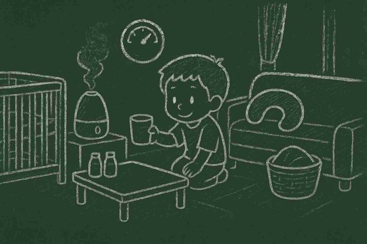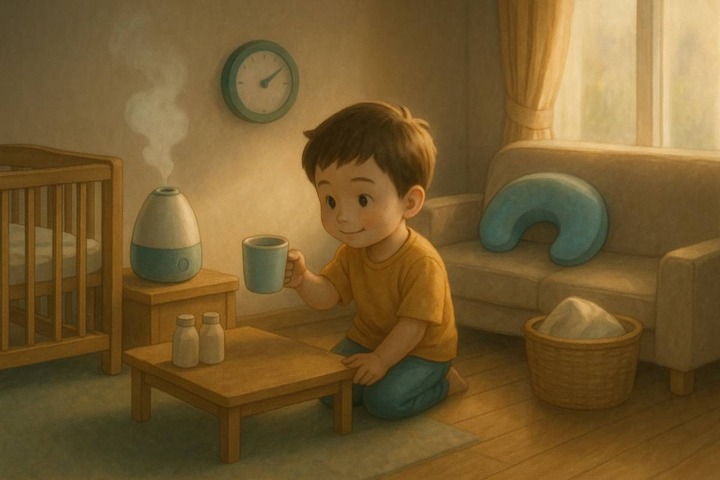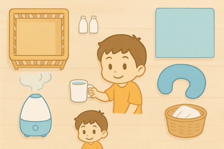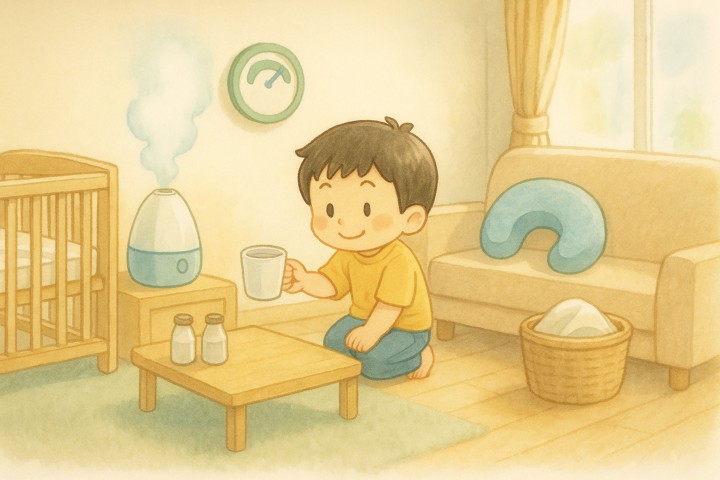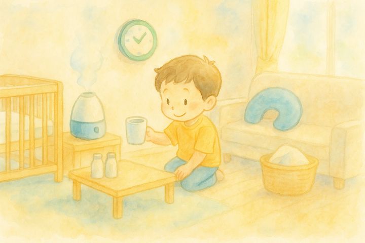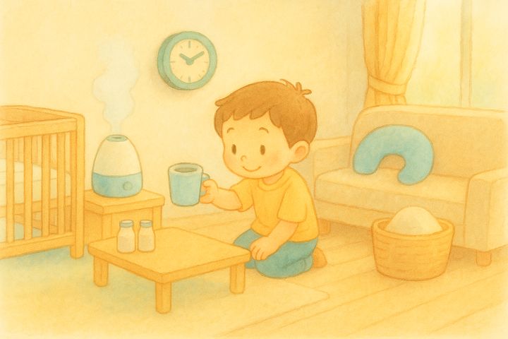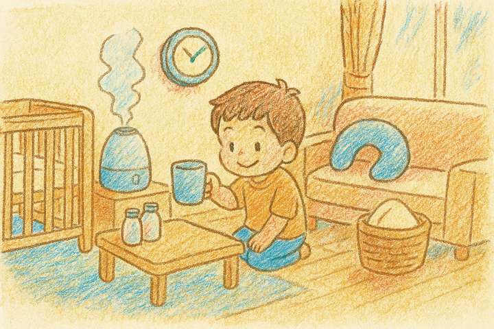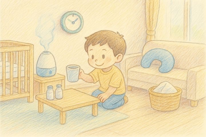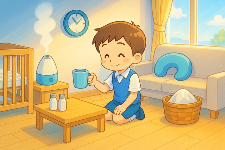 スタイルテンプレ(英語)in a soft picture book style, pastel colors, gentle rounded shapes, subtle paper grain, warm and cozy hand-painted look