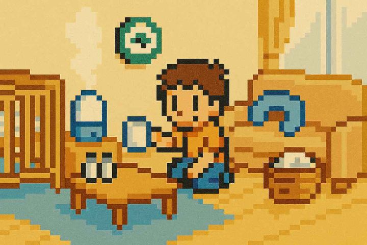 スタイルテンプレ(英語)in a retro pixel art style, low resolution with clearly visible square pixels, limited color palette, classic 8-bit game look