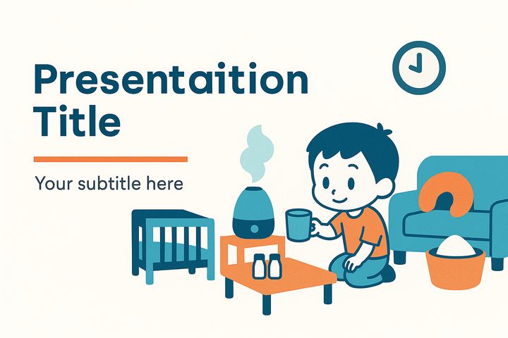 余白多めの横長スライドに、タイトル・サブ見出し・簡単な図やアイコンが配置された見た目。シンプルな配色で、ビジネスプレゼンっぽいデザイン。