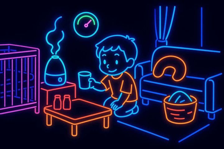 スタイルテンプレ(英語)in a neon city pop style, glowing pink and blue lights, soft gradients, retro urban night atmosphere, slightly nostalgic and stylish