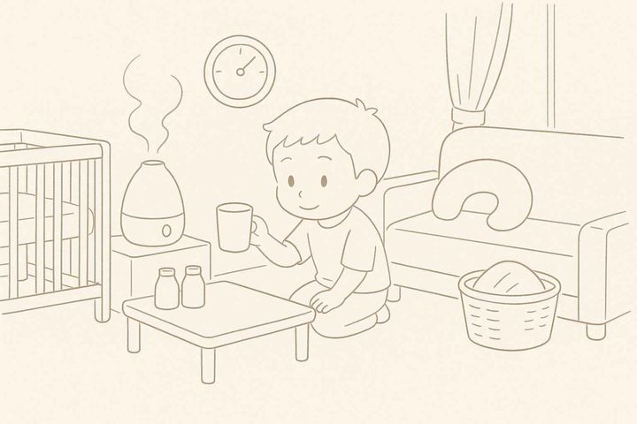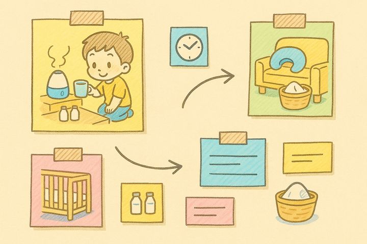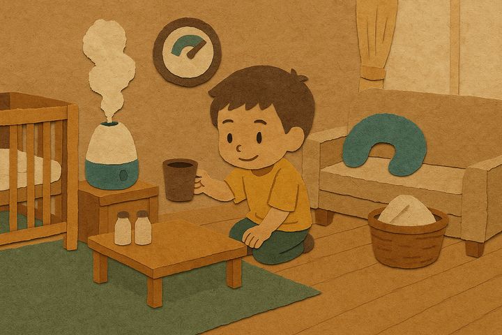 スタイルテンプレ(英語)in a soft picture book style, pastel colors, gentle rounded shapes, subtle paper grain, warm and cozy hand-painted look