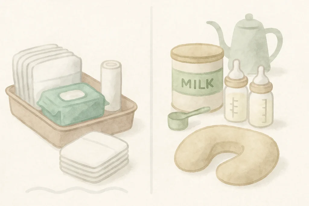 【帰宅後から必要な育児グッズ】おむつ替えセット/ミルク・授乳セット