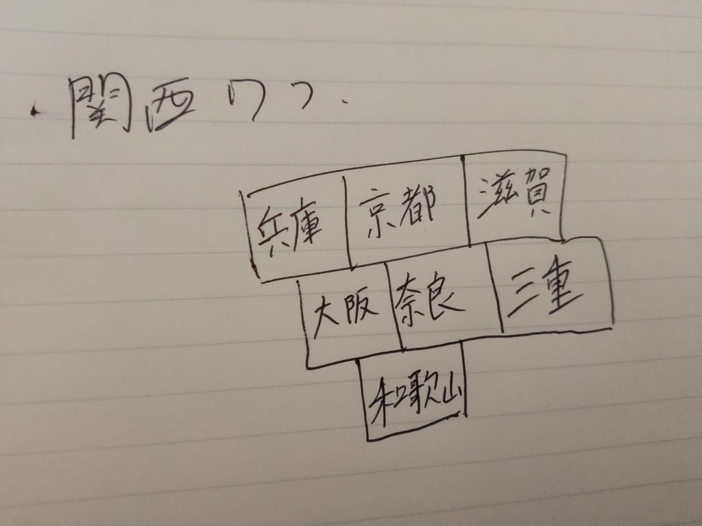そして僕は関西地方で覚えていますが、近畿地方という呼び名の方が一般的かもしれません。
