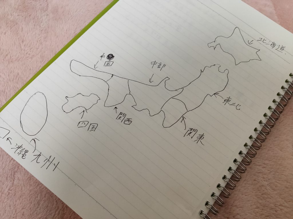 自分なりの日本地図を描く事で、知らない誰かが描いた日本地図とにらめっこするよりも確実に早く覚えられます!あなたがパッと見て覚えやすい絵を描いてみましょう!