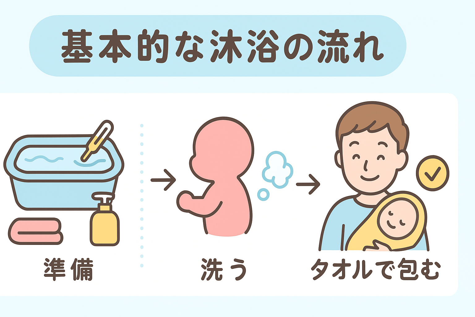 まずは基本的なパターンを知っておきましょう。(うちの沐浴スタイルは後で紹介します!)