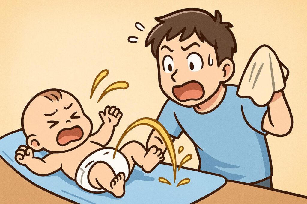 子育てあるあるですが「替えている最中に追いしょんされる」というのは避けられません。