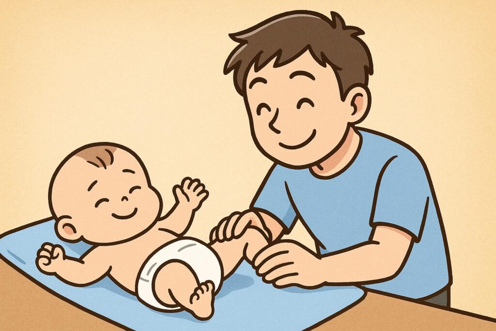 おむつ替えは赤ちゃんの動きによって難易度がその都度変わりますので、僕は「綺麗におむつを替えるゲーム」だと思って楽しんでいます。